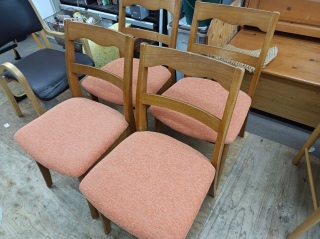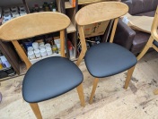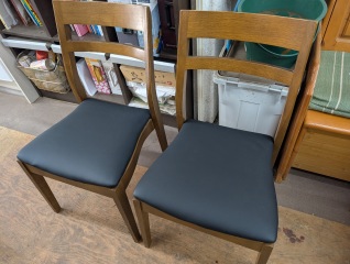 はっきりしないお天気が続いていますが、張替はスッキリ出来ていますよ。左はドレッサーの椅子、右はカリモク製ダイニングチェアー本日完了 |