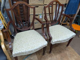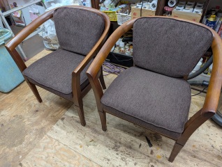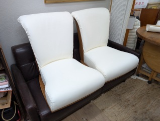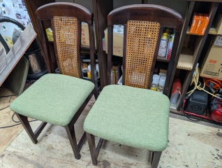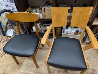 左は一旦分解後、組み直ししています。右は座面張替完了  |