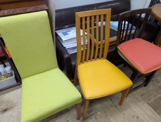 カラーで楽しく張替。オリジナルな椅子に仕上がりますよ