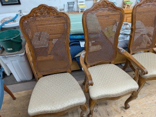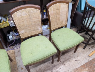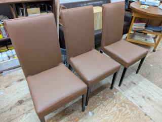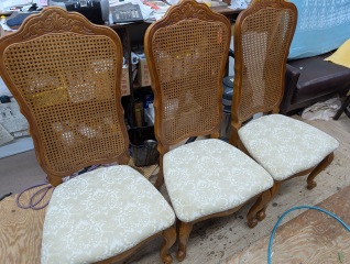 いすを全て分解し組み直しております。今回、張替も承りましたのでまた出来上がり掲載いたします。