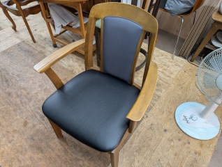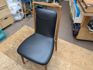今日の1脚ご紹介は黒の合皮座面のみ張替です。ツートンの場合、この椅子の場合、黒が似合うと思います。 |
