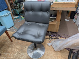 デスクチェアーの座面部分の張替ご依頼でした。黒の合皮なので違和感はありません。部分張替の場合、その部分が独立してる場合は可能です。