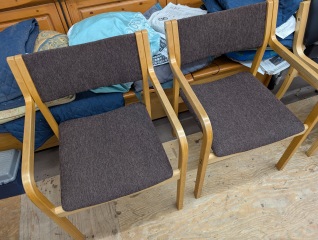 カリモクチェアー。座面張と緩み直し修理中写真です。 |