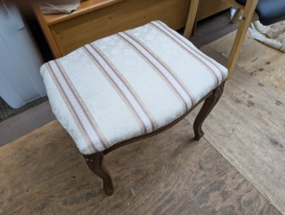 今日から九月。最高に暑いです。まだまだ2か月暑い日が続きますが、くれぐれも皆様ご自愛ください。写真は本日完成ストライプ生地で張替スツールです。 |
