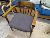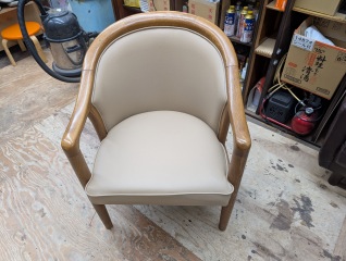 本体の組み直し、張替完了しました。お客様は新品購入か修理を迷われておりましたが、今回は修理が良かったと店主も考えます。いい椅子、座り心地いいですよ。また長年ご使用いただけますよ。