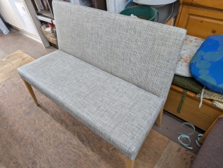 今日は少し暖かかったですね。今回のご依頼は座面の張替です。合皮にて張替ました。背中の部分はお客様のお父様が籐の部分をパンチ穴のあるボードにて上手く張替ておられました。大きめの座面なので座り心地がいいですね