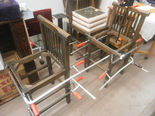 自分にとって簡単なものから難しいものまでいろいろあります。今修理中の椅子です。また出来上がり写真、掲載します。年内お渡しいたします。