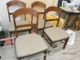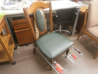 写真の椅子は福島区のおばんざいバーさまのお店の椅子。1脚は座面張替でした。また2脚とも馬蹄形の背中のカーブ部分が破損しており、そこの修復でしたが難易度はかなり高かったです。本日完了、明日納品。そして明日そのお店のご紹介と日記を付けたいと思います。