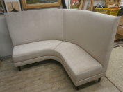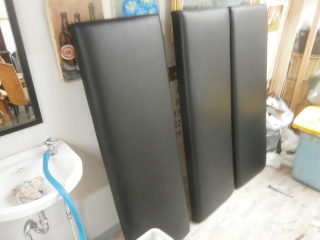 壁面に3本ボックス椅子張替納品設置しました。キルティング加工を施しました。布地から黒の合皮に張替ました。ちょっと写真暗かったかな。