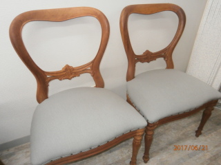 寒さに強いのです。写真は柄合わせをしました椅子の張替完成です。 |