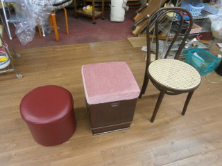 今日は暑かったですね。明日は雨模様。写真はスツール(補助椅子)張替完了です。ストライプ生地でいい感じ